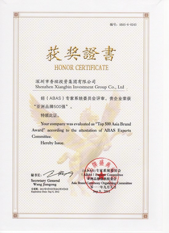 亞洲品牌500強企業稱號