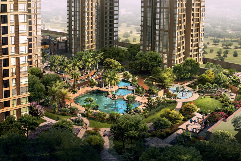 ·  小區內部:約500㎡情景式中心泳池、一層架空層約1200㎡泛會所