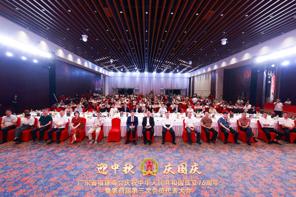 2025年9月20日,廣東省福建商會慶祝中華人民共和國成立76周年暨第四屆第三次會員代表大會,在廣州白云國際會議中心珠江廳召開。廣東省工商聯黨組成員、專職副主席馮日光,福建省人民政府駐廣州辦事處副主任賴再生,廣東省工商聯會員部部長、一級調研員陳凌,廣東省社會組織管理局登記處副處長龍仕運,廣東省商務廳投資促進局副局長劉德增,福建省人民政府駐廣州辦事處原副主任許建設,泉州市人民政府駐深圳、廣州辦事處主任吳榮亮,泉州市人民政府駐深圳、廣州辦事處原主任王志明,興業銀行廣州分行副行長陳先等領導嘉賓,全國政協委員、創會會長李賢義,全國政協委員、會長許明金,理事長王詩增,監事長陳榮華,秘書長朱東炫,執行會長聶靜潔、汪宗葉、陳銘、林學鳳、鄭炘茹、,名譽會長蘇其遠,以及商會的常務副會長、副會長、理事、監事,汽摩分會和各團體會員單位的會員代表以及在粵閩籍鄉賢等400多人出席會議。